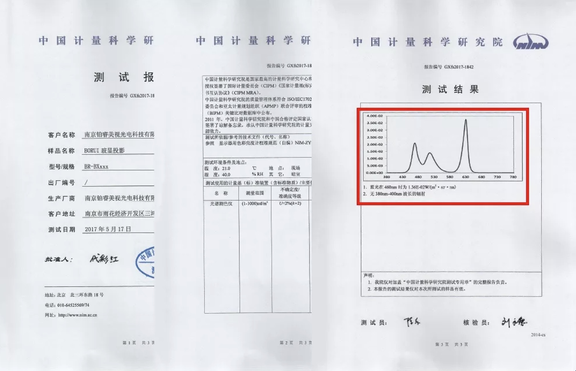 玻顯投影在藍(lán)光波段460nm處